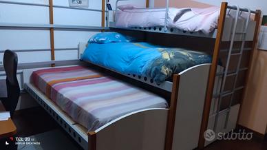 Completa di materassi, scrivania, libreria verticale, comodino pensile, due mensole a scomparsa molto robuste.