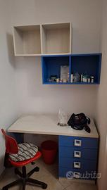 Cameretta con letto a castello, armadio ponte doppia anta, armadio tutta altezza anta singola, ripostiglio doppia anta, terzo letto estraibile scrivania con 4 cassetti e mensola a 4 cubi, il tutto in ottime condizioni.