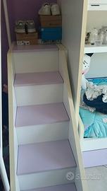 Vendo cameretta Mistral con 3 letti a castello. Colore bianco e lilla, 1 letto a scomparsa a cassettone. Scale contenitore