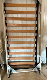 Vendo cameretta a ponte 2 letti ( c’e la possibilita di avere anche il letto matrimoniale ) in ottimo stato. Lunghezza 3,70 mt , profondita 1,50mt altezza 2,60 mt. Vendo separatamente scrivania con cassettiera euro 150.