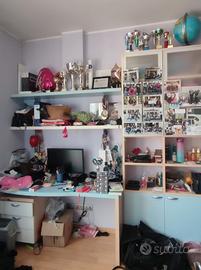 Camera a ponte ad angolo, completa acquistata in mobilificio, condizioni ottime, colore celeste, bianco e faggio. Composta da :
