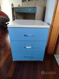 cameretta a ponte già smontata in buono stato vendo .La cameretta è così composta:armadio a ponte ad angolo ,non c'è il letto ,comodino con 3 cassetti e scrivania con 1 cassetto,2 mensole .Le misure sono : lunghezza totale 202cm , larghezza totale 152cm , altezza totale 260cm . Profondità cm60 . Altezza dal pavimento all' anta 124cm . Scrivania, lunghezza 60,5 cm , larghezza 90 cm, altezza 79cm.Comodino : lunghezza 46,5cm , larghezza 45cm , altezza 54cm . Mensole: lunghezza 110cm , larghezza 25cm , altezza 2cm . Armadio è già smontato.Non spedisco , ritiro presso il mio domicilio.