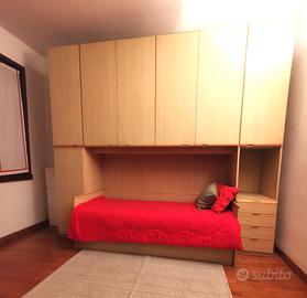 Vendo cameretta a ponte in ottime condizioni, ideale per ottimizzare lo spazio. Composta da: letto singolo, a cui si aggiunge un secondo letto estraibile inferiore; sopra il letto si trova un armadio a ponte a sette ante; vi è inoltre un ulteriore armadio a due ante con cassettiera. L'arredamento si completa con una scrivania e scaffale libreria. Struttura solida e funzionale, con ampi spazi per vestiti, libri e giochi. La cameretta è in ottimo stato, ben tenuta e subito disponibile. Colore: Faggio Smontaggio e ritiro a carico dell’acquirente. Prezzo: 300€
