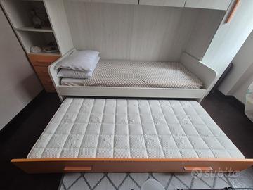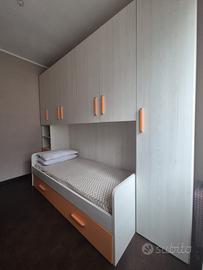 Vendo cameretta a ponte in ottime condizioni, colore effetto legno chiaro con finiture albicocca. La cameretta è molto capiente e funzionale: composta da 5 ante medie, 1 anta lunga e 4 cassetti, ideale per organizzare vestiti, giochi e oggetti. Misure: 294 x 95 x 245cm (larghezza, profondità, altezza) Sono presenti due letti: uno fisso a vista e uno a scomparsa estraibile. Il letto inferiore può essere sollevato fino alla stessa altezza dell’altro, permettendo di avere due letti affiancati sullo stesso livello o un unico piano più grande. Materassi inclusi. Massima funzionalità in poco spazio: la soluzione ideale per camerette di bambini e ragazzi o per una pratica camera ospiti. PREZZO TRATTABILE POSSIBILITÀ DI VISIONARLA POSSIBILITÀ DI RITIRO GIÀ SMONTATA