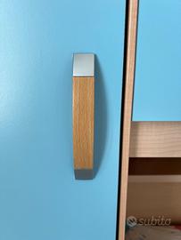 - Maniglie di design in legno e metallo satinato, coordinate con gli armadi.