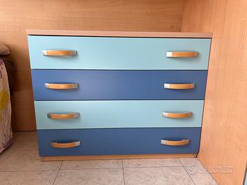 - Mobiletto con 4 capienti cassetti su due tonalità di blu