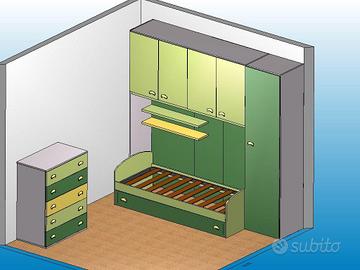 Vendo cameretta completa a ponte, pratica e salvaspazio, in ottime condizioni, colori verde/giallo vivaci e adatta a bimbi o ragazzi.
