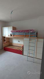 Cameretta a ponte con 3 letti, armadi e scaletta