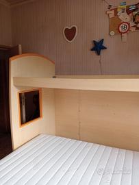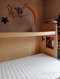 Praticamente nuova, la parte dell' armadio è stata usata molto poco. I letti un po' di più, ma sono in ottime condizioni. I 2 alti hanno la tavola, il più basso le doghe.