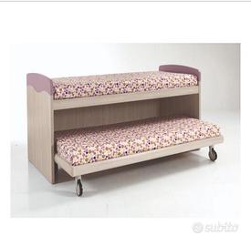 Cameretta a ponte composta da 3 letti esterni di cui uno a ponte alto, uno mezzano e uno basso. (come foto esempio)