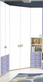 Una a 2 ante più cassettiera, una parte angolare molto ampia a 2 piani , una ad 1 anta alta 2 ripiani esterni e cassetti singoli sotto. (come foto esempio)