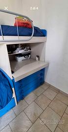 Cameretta a ponte completa di materassi usati pochissimo ,2ante armadio,4cassetti,scrivania a scomparsa con libreria interna ,scaffali con sportelli,scaletta ,ottimo stato misure L3.03x P 96xH 2,60 prezzo trattabile