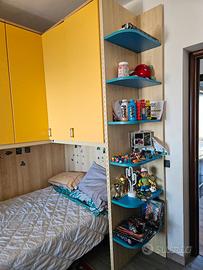Vendo cameretta a ponte a L con libreria laterale, comodino e lettino singolo con letto ospite sotto (non visibile in foto ), buone condizioni. Il letto in foto non è in vendita, si vende con struttura singola abbinata e materasso Memory 1 piazza. Trasporto e smontaggio a carico di chi acquista.
