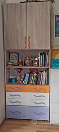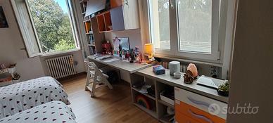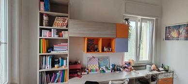 Cameretta a ponte con letti, libreria e scrivania