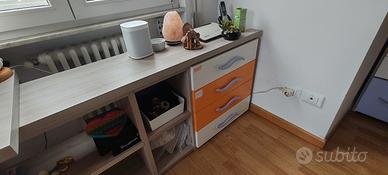 Splendida cameretta GSG come nuova!! Armadio a ponte Lunghezza 350 cm profondità 60 cm altezza 260 cm con 2 letti doghe in legno larghezza 93 cm lunghezza 200 cm cassettiera piccola centrale: larghezza 50 cm profondità 43 cm altezza 41 cm colonna libreria / cassettiera altezza 260 cm larghezza 103 cm profondità 32 cm mobile scrivania: colonna a sx: altezza 260 cm larghezza 63 cm profondità 32 cm scrivania: lunghezza 200 cm larghezza 59 cm pensili: lunghezza: 160 cm profondità 34 cm prolungamento scrivania con possibilità di creare angolo: lunghezza 150 Profondità: 34 cm