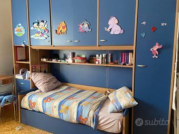 Cameretta a ponte corredata da mobile porta tv o armadio a muro con letto a cassetto.