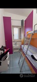 armadio a ponte con due letti + cassetto a scrivania + due armadi con ante + armadio stretto e lungo ad un anta. Lunghezza ponte con letti = 3,10 m; profondità=85cm. Armadio stretto e lungo larghezza= 50 cm. Prezzo € 400.