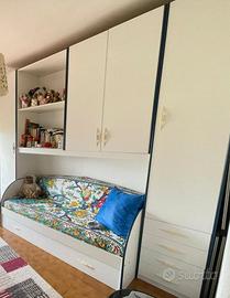 camerata a ponte con cassettone materasso singolo nuovo e cuscini posteriori da poter usare come divanetto