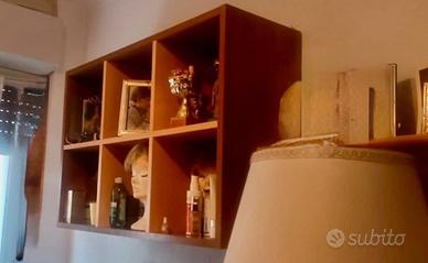 Letto singolo con secondo letto a scomparsa piu’ cassettiera, armadio a ponte e due librerie pensili Altezza 2,56 , lunghezza totale 3,50 (1,43+2,07).