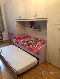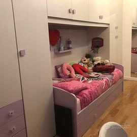 Lunghezza totale 425 cm, altezza massima 245 cm, profondità armadiatura 60 cm, profondità letto 88 cm. Comprata alla Sme 8 anni fa. Materassi NON inclusi.