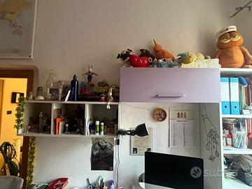 Vendesi cameretta a ponte colore rovere sbiancato e malva così composta: ponte 6 ante più cassettiera lunghezza 295x245x60, 2 letti comprensivi di materasso, 1 scrivania con 3 cassetti 180x60, 1 libreria a colonna 213x47x32, 2 mensole a cubi di cui una con sportello 92x32. Disponibile da metà Febbraio 2026 (concordare) montaggio e trasporto a cura dell’acquirente.