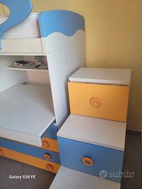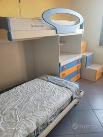 Vendo cameretta componibile Modello Job Eco di Orchidea Mobili Srl così come in foto (senza materassi)..il letto sotto è estraibile. Le misure sono: profondità 90 cm lunghezza 3,53 mt altezza 2,60 mt.