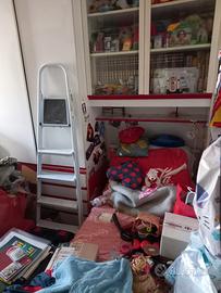 Vendo ( causa trasloco) cameretta a ponte con due letti più libreria non accorpata con scrivania, sedia rossa, mensolone e lampadario