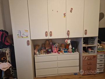 vendo cameretta a ponte molto bene tenuta 3 anni di vita. Spazio per il letto a 150 cm .Il come non incluso in prezzo.E stato comprato da mondo convenienza pagato più di 450 euro,con fattura che si po vedere. Il armadio è già smontato