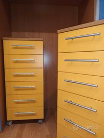Cassettiere Mobili: Include 2 cassettiere alte a 6 cassetti dotate di ruote robuste. Possono essere spostate facilmente per pulire o per cambiare la disposizione della stanza.