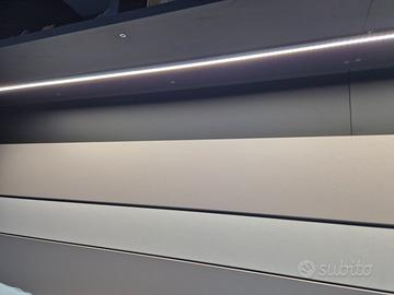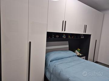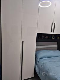 La camera e' stata acquistata 1 anno e 5 mesi fa. È praticamente nuova! La vendo x togliere il ponte. La vendo SENZA LETTO quindi solo l'armadio. È lunga 4.10 . Le 2 ante lunghe sono tutte pianali e una cassettiera all'interno, gli sportelli sopra che fanno da ponte sono a pianali,le altre due ante lunghe sono con il ferro x appendere i vestiti. Sotto il ponte c'è un led! Prezzo non trattabile. Chi la compra la deve venire a smontare e portare via. Compresa di comodino