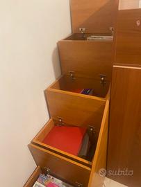 Vendo cameretta a ponte comprensiva di materassi e una rete a doghe in legno . Questa cameretta ha in dotazione una scaletta in ferro ma per comodità ho acquistato una scala mobile con 4 scomparti visibile in foto. Contattatemi solo se interessati no perditempo ,prezzo non trattabile