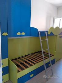 Vendo cameretta a ponte di ottima qualità,colori per come vede in foto scaletta in alluminio,completa di reti e materasso. La cameretta è stata utilizzata 2 anni. Vendo per inutilizzo.