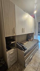cameretta a ponte con armadio e letto singolo estraibile. Perfetta per ottimizzare gli spazi!
