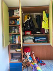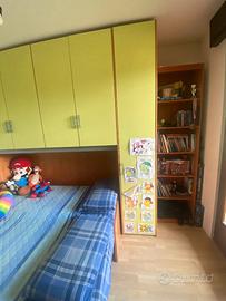 vendo cameretta per bambino/ragazzo in ottime condizioni. Armadi molto spaziosi, cassetti di cui uno molto spazioso, libreria, doppio letto estraibile che può essere utilizzato separatamente o affiancato creando letto matrimoniale come in foto. Ampia scrivania con 2 mensole. comodino dotato di rotelle. Compreso materasso del letto estraibile, l'altro no. un armadio è dotato di meccanismo per abbassare i vestiti appesi come in foto. prezzo LEGGERMENTE trattabile, non intendo regalarla. Smontaggio e trasporto a carico dell'acquirente. BORGO CHIESE, PROV TRENTO