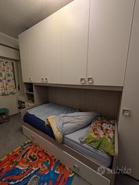 Vendo intera camera (camera a ponte 3 metri + armadio con cassettiera 1 metro) per una lunghezza totale di 4m ed altezza di 2,60 metri e profondità di 0,59 metri. Acquistata da mondo convenienza. Smontaggio e trasporto a carico dell’acquirente.