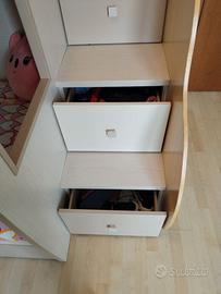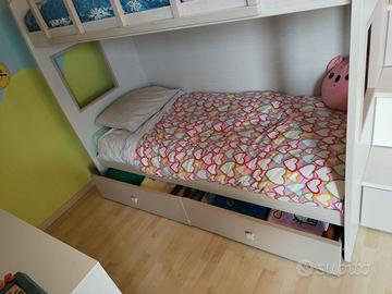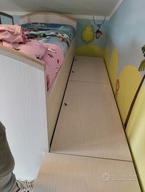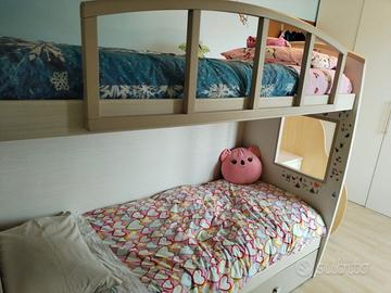 Cameretta a ponte con comodi ripostigli su scaletta e ponte per letto superiore Misure cameretta Lunghezza 2,74 metri Profondità1,46 metri Altezza 1,75 metri