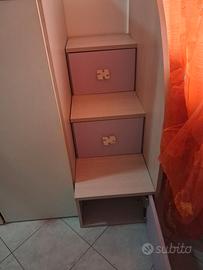 Vendo cameretta mondo convenienza in buone condizioni, pagata 1400, ci sono 2 letti, sotto il letto in basso ci sono 2 comodissimi cassettoni, le scale per salire sul letto sopra sono contenitori con sportelli, gli armadi sono molto capienti, volevo in aggiunta ho anche un armadio a 2 ante con 1 ampio cassetto ,da vendere separatamente.