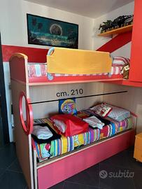 Vendo mobile a ponte con tre letti, cassettiera, scaletta con contenitore, cabina armadio angolare. Trasporto a carico dell’acquirente