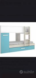 Vendo cameretta a ponte da tre posti letto e armadio incorporato, colore come da foto, ( le foto sono da web), tranne la N6 che é l’originale,usata solo una stagione estiva, quindi nuovissima, già smontata e impacchetata, completa di istruzioni e tutto il necessario per il montaggio spedizione da concordare. Per qualunque info contattatemi. Prezzo trattabile.