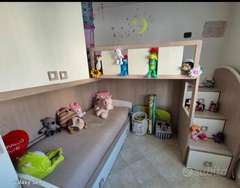 vendo bellissima cameretta a ponte con 3 letti, scala a cassettoni, vendo causa inutilizzo dello stesso. misure. lunghezza è circa 2.50 metri, larga 90 cm fino al letto giu, la parte dove c è il letto sopra e scale 2.50 metri circa 1100 euro. ritiro e smontaggio, a carico di chi acquista