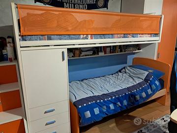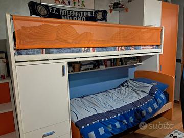 Vendo cameretta completa a ponte salvaspazio di alta qualità, marca Moretti Compact ,Ideale per ottimizzare lo spazio in camerette per bambini o ragazzi. La composizione è robusta e versatile.