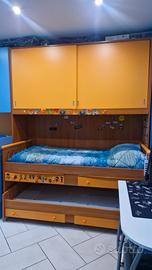 Vendo cameretta a ponte con due letti e due scrivanie a scomparsa. Lunghezza ponte 214 cm altezza 263 cm e profondità 106 cm.