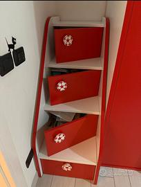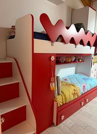 Vendo cameretta marca Colombini a ponte con due letti completa di armadio, scala che porta al letto superiore fornita di cassetti. 2 cassettoni sotto al letto inferiore. Completa di un materasso e reti. Perfetta come in foto