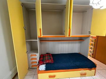 Vendesi cameretta a ponte con 2 letti (uno estraibile) come da foto. Cameretta praticamente nuova. Misure: armadio L 252 x H 250 x P 55 Letto: 90x 200 NON SONO INCLUSI I MATERASSI