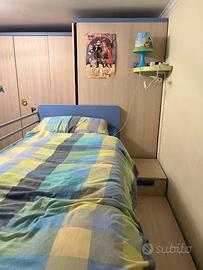 metallica (abbassabile), letto inferiore con due ampi cassettoni.