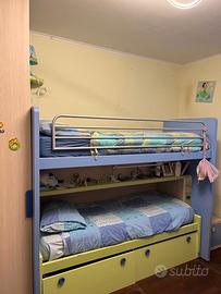 Si specifica per correttezza che i due cassettoni estraibili sotto il letto inferiore sono rotti e necessitano di riparazione o sostituzione delle guide. Il resto dei mobili è perfettamente funzionale.