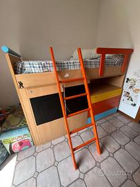 Cameretta con Letto a soppalco con armadio nella zona sotto stante, 4 cassetti e spazio libreria. Mobilificio Ottima stato. Materasso escluso Regalo mensola abbinata Misure: Altezza: 145cm Lunghezza: 2 mt Larghezza 92 cm Ottima soluzione salvo spazio. Smontaggio e trasporto a carico dell’acquirente Zona Fiumicino