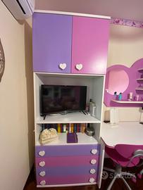 Vendo cameretta completa di tutto in vero legno, praticamente nuova. Ideale per 2 persone Color lilla, fuxia e bianco