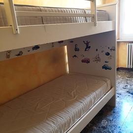 Letto a castello in legno massello artigianale, venature bianco rovere, con doghe larghe ortopediche permaflex in legno. Ben tenuto.