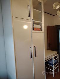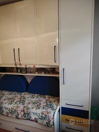 Vendo cameretta laccata bianca completa, usata ma in ottimo stato. Perfetta per bambini o ragazzi. Caratteristiche principali: •Colore: bianco laccato con dettagli blu •Composta da: 4 armadi, letto singolo a ponte con cuscini e possibilità di letto aggiuntivo estraibile, scrivania con sedia •Materiale: MDF •Stato: buono, senza danni significativi •Smontaggio e trasporto a carico dell’acquirente